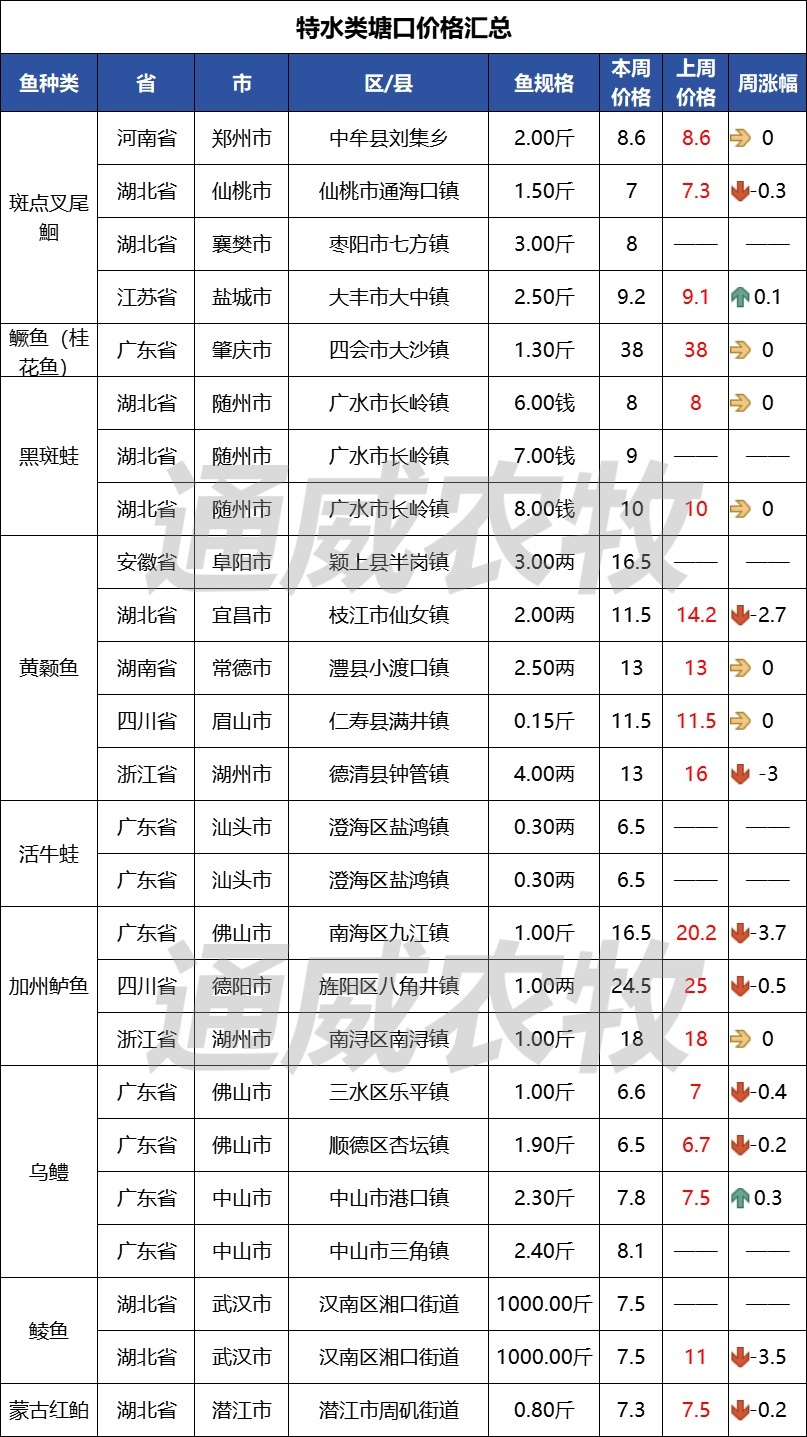 因鱼价时有波动,本报价仅供广大养殖户参考,具体鱼价请以当地为准!