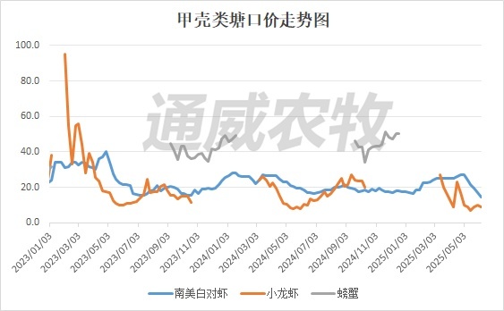 华东地区:江苏盐城地区受直放苗大量上市,叠加病虾冲击,市场供需失衡,价格呈现下跌态势,25头虾价格约13-15元/斤,30头虾价格约12.5-14元/斤。浙江绍兴地区25头价格约18元/斤,较上周上涨1元/斤,30头虾供应充足,价格约15元/斤,较上周下跌1元/斤。